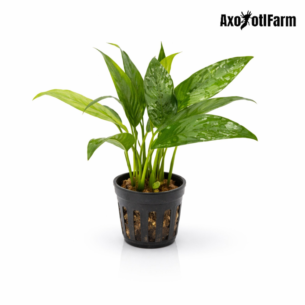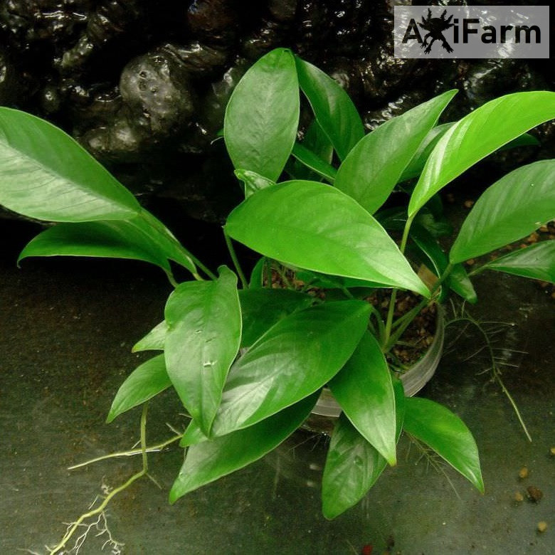 Az Anubias bateri broad leaf akváriumi növény egy lassan növő, törzsre kötött növény, amely a trópusi esőerdőkben őshonos. Az élénkzöld levelek, gondosan megtervezett levelek, és a gazdag szerkezetű szárak egyedivé teszik ezt a növényt az akvárium belsejében. A levelek széles és kissé párnázottak, amelyek vonzó megjelenést kölcsönöznek a vizuális környezetnek.